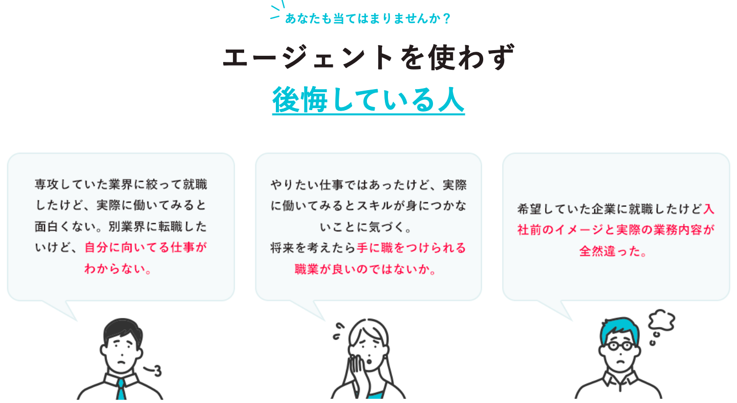 fa-check-squareどんな仕事が良いか分からない fa-check-square入社前とイメージが違った fa-check-square手に職をつけられる仕事がいい