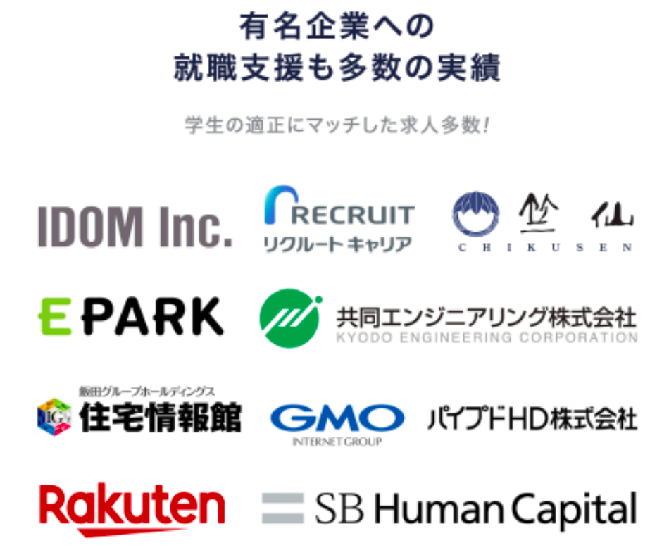キャリアスタートは楽天・リクルート・GMOなど有名企業への支援もできる♪