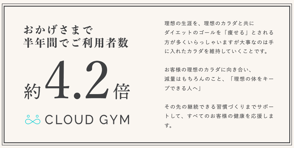 クラウドジムは半年間でご利用者数4.2倍も増加!