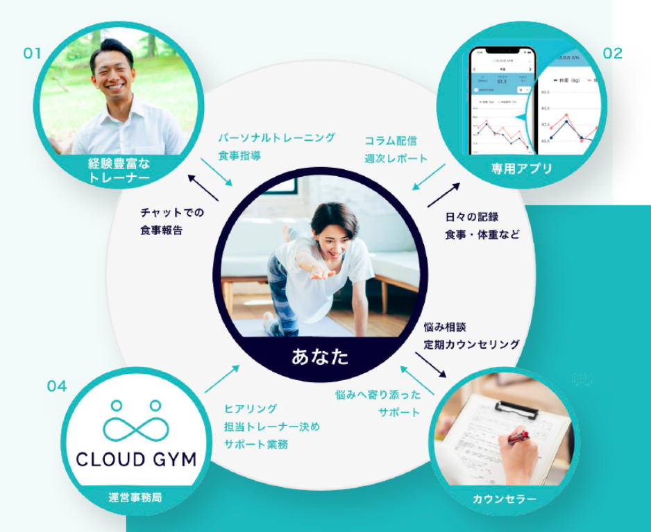 トレーナー・アプリ・カウンセラーを通して、あなたを全力でサポート♪